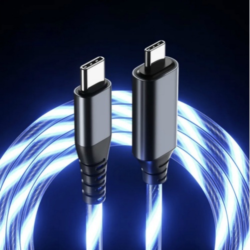 ケーブル全体が鮮やかに発光して演出。PD最大60W対応 高速充電&データ通信Type-CtoCケーブル レインボー発光