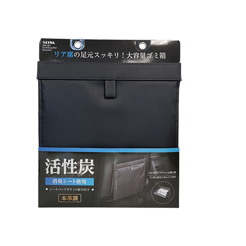 消臭効果のある”活性炭シート”内臓のシートバックポケットなどに取り付ける”本革調”ビックスリムダストです。